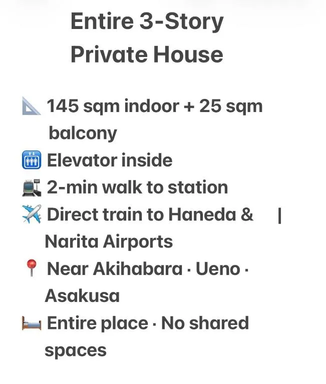 東京・浅草橋周辺にあるクローバーハウスは、ファミリー向けルームやエレベーター完備の施設となっており、滞在中の快適さをサポートします。無料Wi-Fiと冷暖房が整えられているほか、加湿機能も搭載されています。また、希望によりベビーベッドを無償で提供しており、家族連れにも配慮された環境です。近隣にはフォアダーが徒歩約1分(76メートル)、商業地である浅草橋駅まで徒歩約3分(304メートル)という立地から日常生活に便利な場所へ素早く移動できます。さらに歴史的名所である浅草見附記念館までは徒歩約4分(378メートル)と近く、江戸時代の門前町風情を楽しめるスポットとして人気があります。車でのアクセスではお台場海浜公園まで約10分の距離(11キロメートル)、静かな散策コースでも知られる神田川沿いの新宿御苑付近となる清水寺方向へは約3分の位置(3キロメートル)にあり、都心部ながら自然豊かな時間も過ごせる点が特徴です